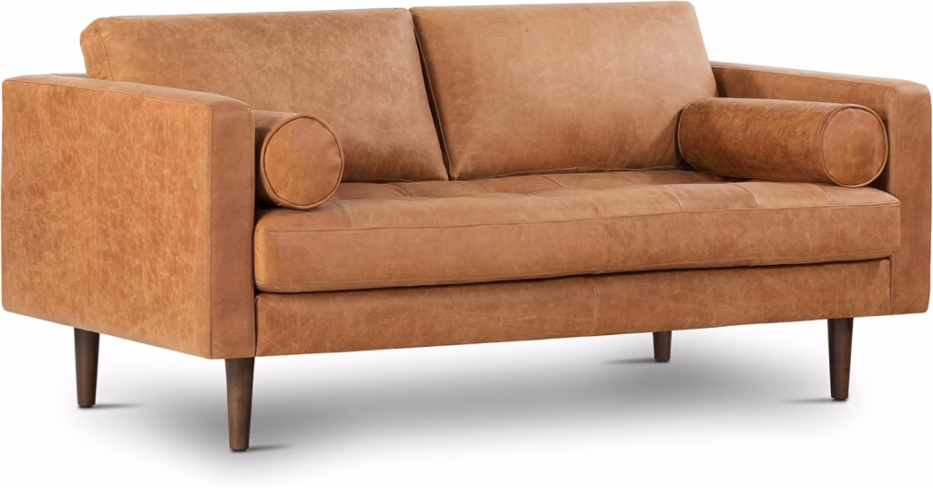 The Cortesi Chicago Leather Sofa is one of the more expensive leather couches on this list. It’s available in 66″ or 79″ and, like most of the couches on this list, arrives unassembled.